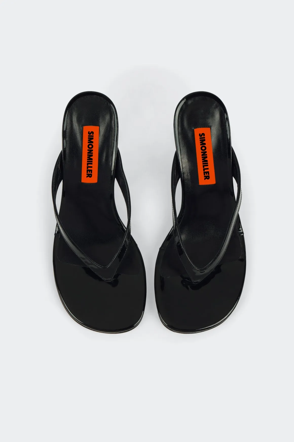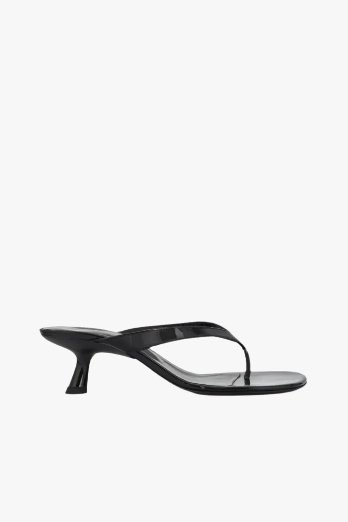 OUR BEST-SELLING PATENT STRAP THONG WITH TEE HEEL. A CLASSIC HEELED SANDAL TO PAIR WITH EVERY OUTFIT.