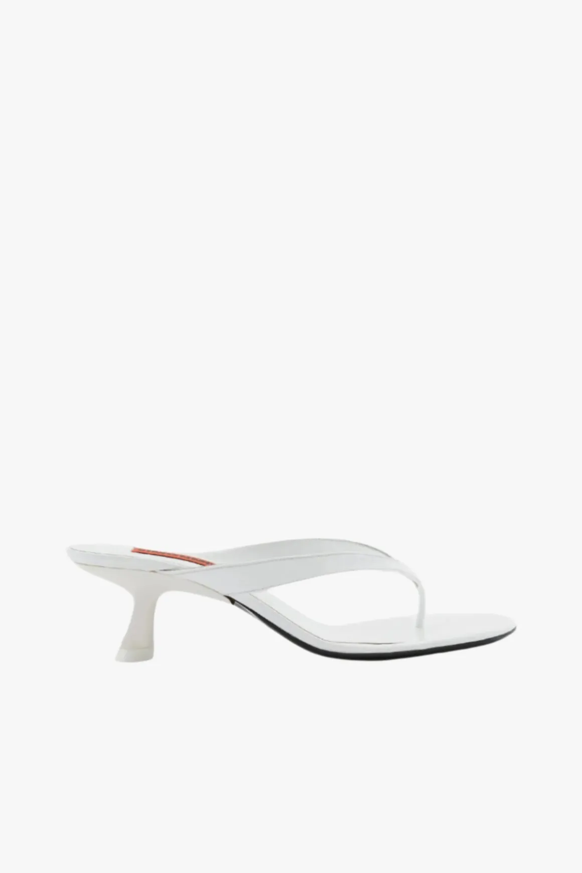 OUR BEST-SELLING PATENT STRAP THONG WITH TEE HEEL. A CLASSIC HEELED SANDAL TO PAIR WITH EVERY OUTFIT.