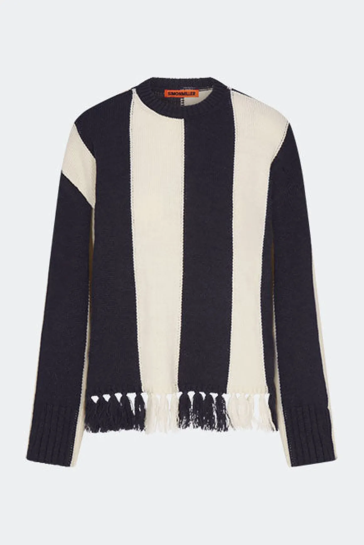 Finished with bold stripes and tassel detailing at the hem for a playful touch.