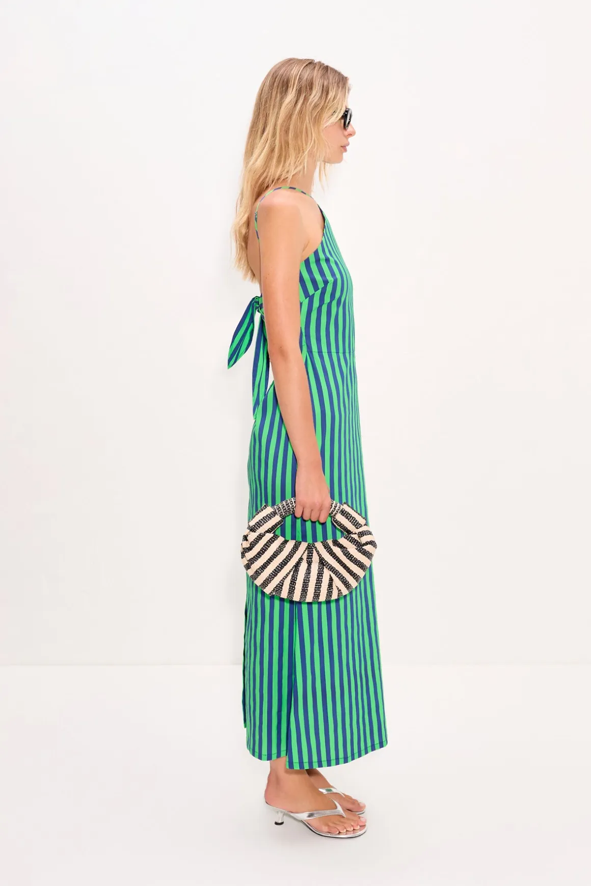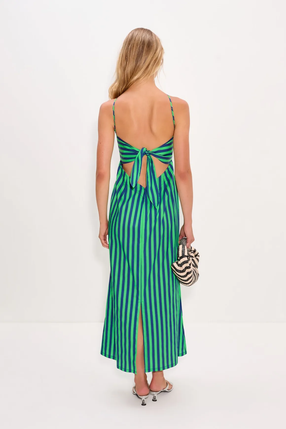 Halter dress in stretch cotton poplin featuring an open back with adjustable ties for a flattering, customized fit.