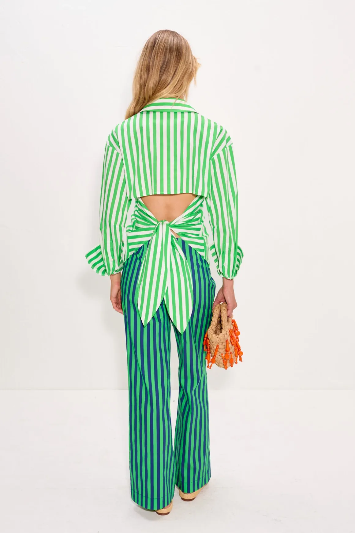 Stretch cotton poplin, with cut out back and adjustable tie for fit flexibility. The ultimate versatile piece, dress up or down.