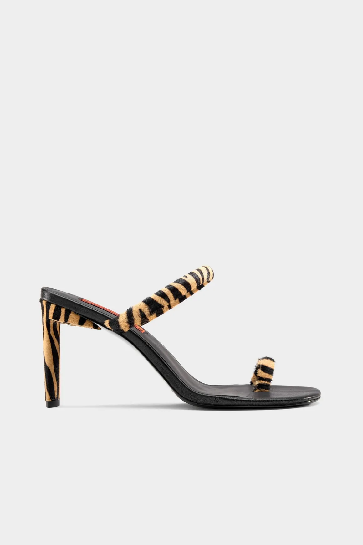 Strappy heeled sandal in brown zebra haircalf. Features toe and foot straps, a sleek 90mm heel, and leather sole.