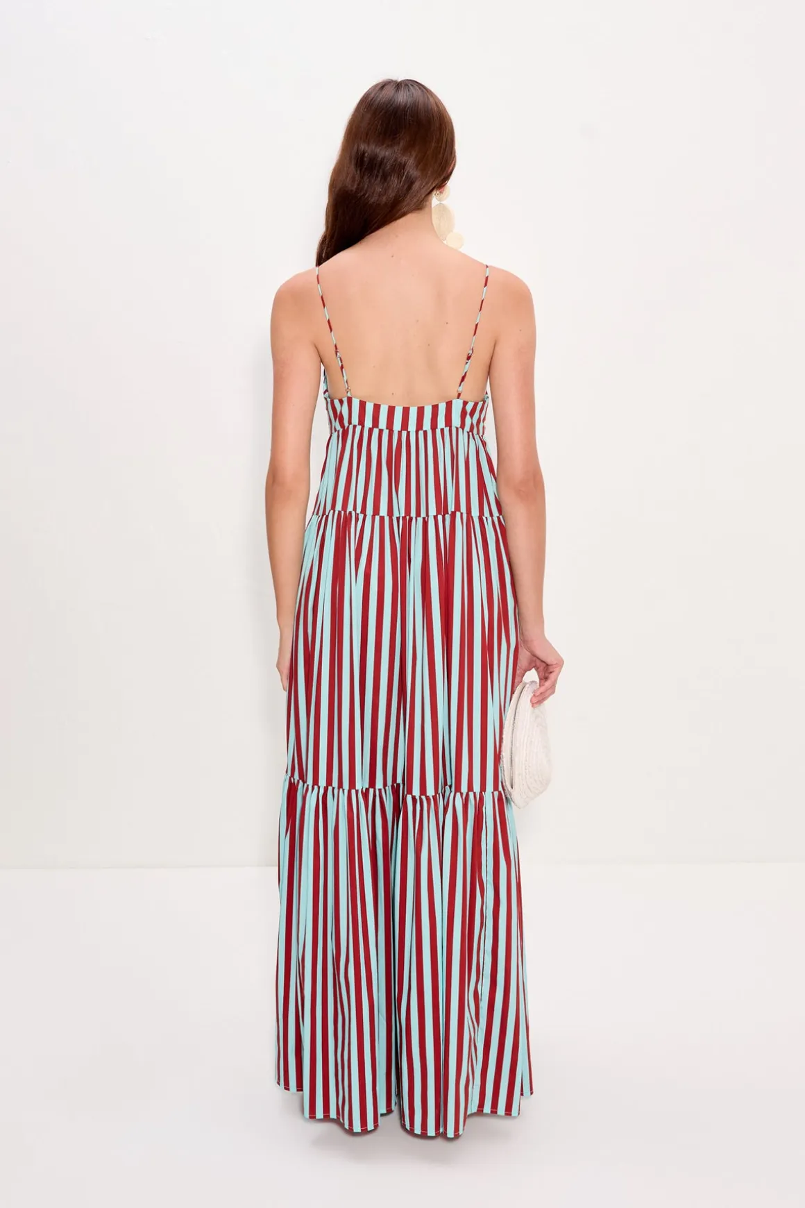 Cotton poplin maxi dress with a deep v-neckline, adjustable straps, and hidden pockets for added convenience.