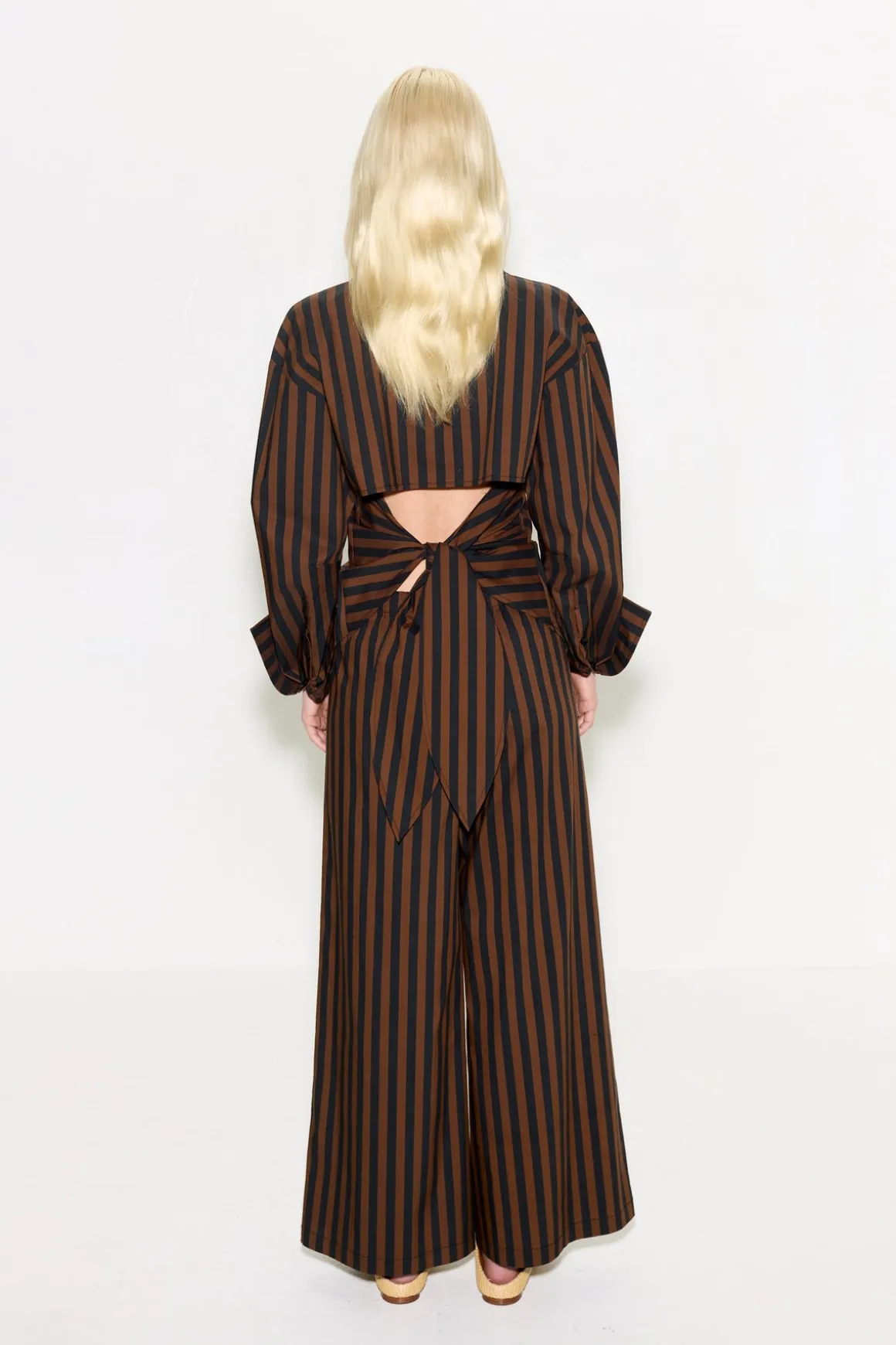 Our best selling pants but now cropped. Wide leg, mid-rise, clean front, and elastic waist band in poplin cotton material.