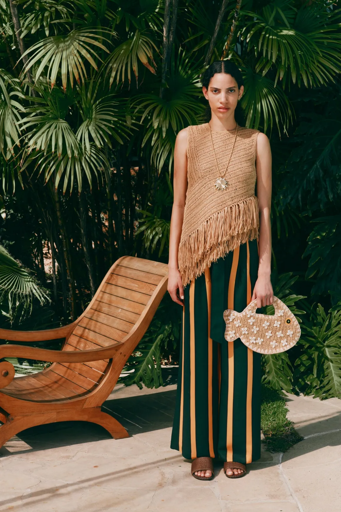 High waisted wide leg crepe pants made in a custom artisanal SimonMiller stripe. With front pleats, belt loops, side and right back pocket.