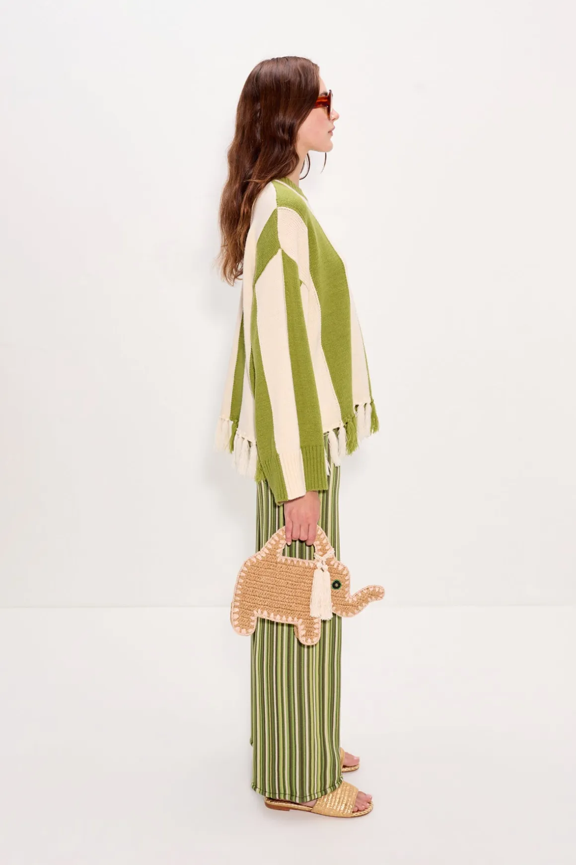 Finished with bold stripes and tassel detailing at the hem for a playful touch.