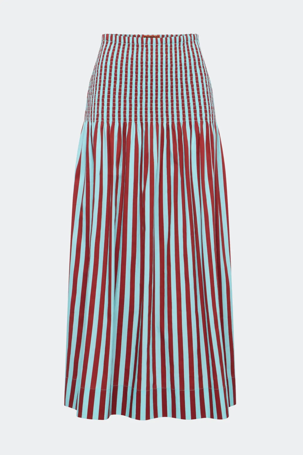 Striped maxi skirt in crisp cotton poplin featuring a comfortable smocked waist and a long, airy silhouette for effortless movement.