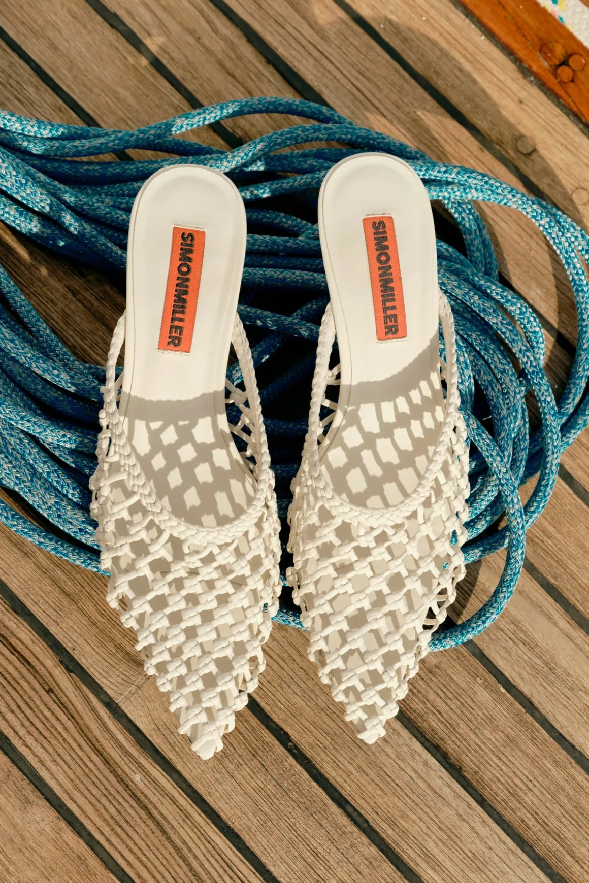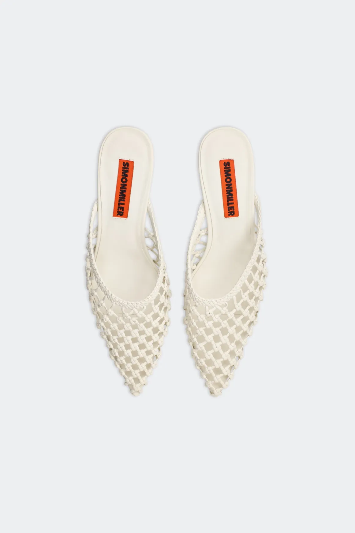 Knotted closed-toe mule crafted with a pointed silhouette and a refined kitten heel. Designed for easy slip-on wear and finished with a smooth leather sole for an elevated, streamlined look.