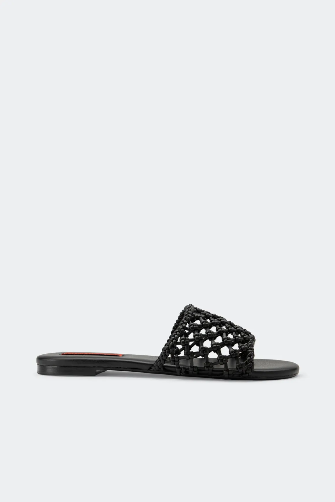 Classic flat sandal with a hand-knotted upper designed for easy slip-on wear. Finished with a leather sole for everyday comfort.