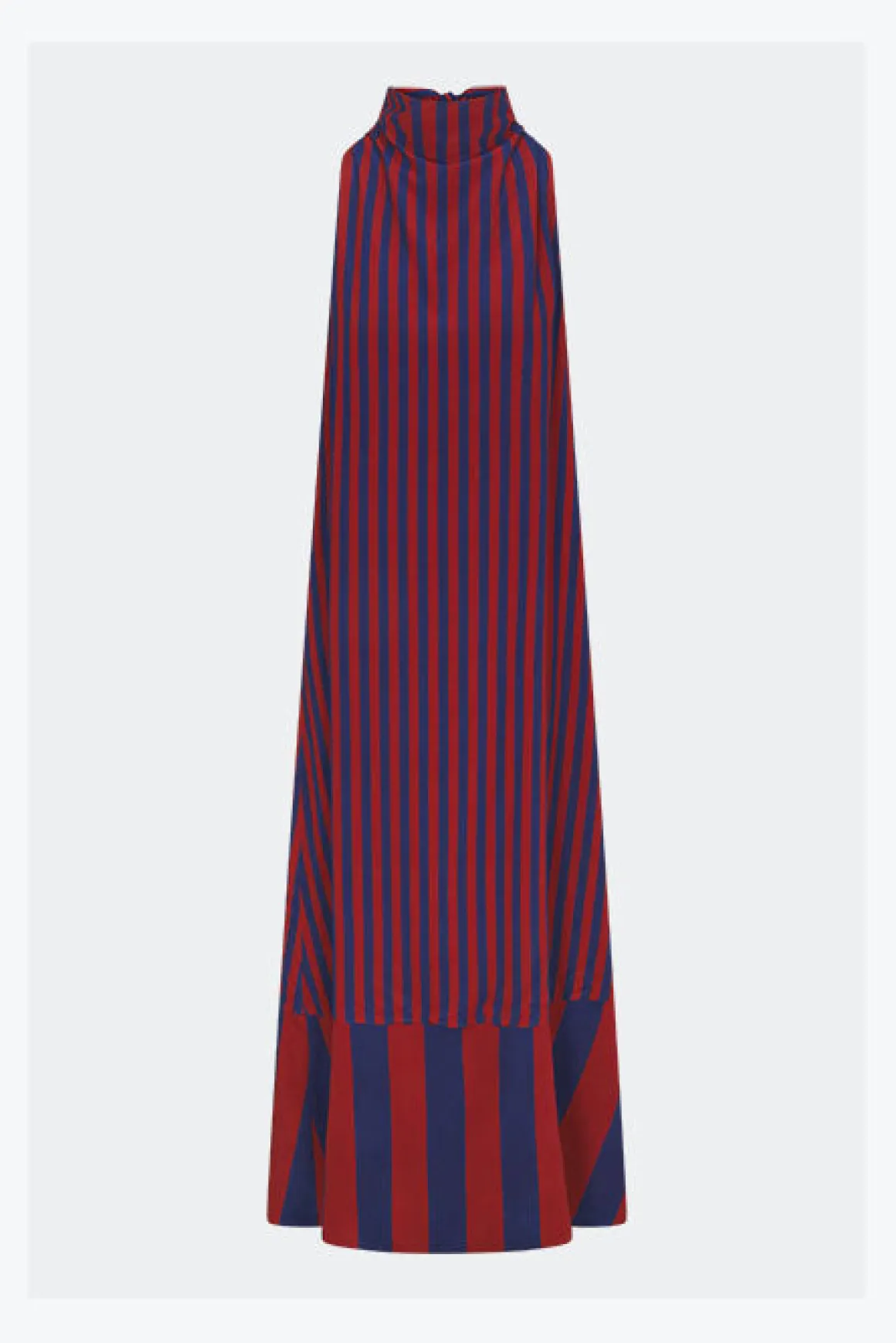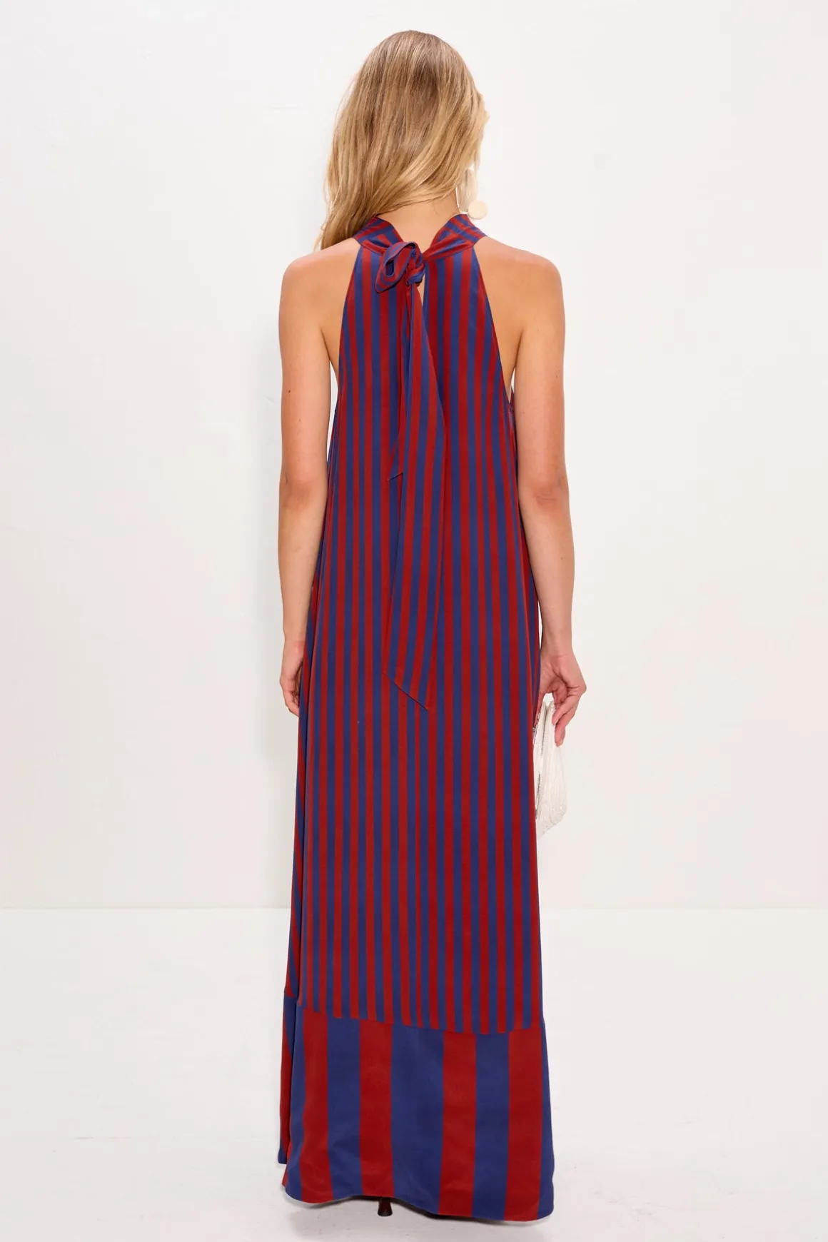 Matte crepe maxi dress with a subtle cowl neckline and adjustable tie at the back for a soft, refined drape. Finished with a flowy silhouette and a contrast bottom hem for a bold, elevated touch.