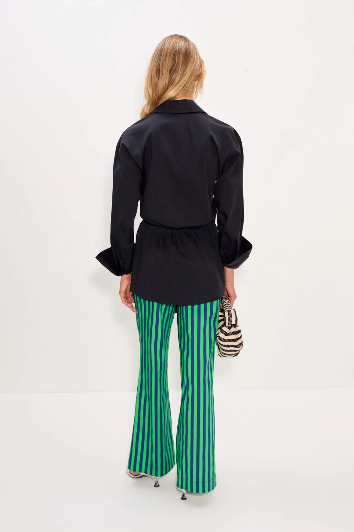 Our bestselling pant, now in a new navy and grass green stripe. Features a wide leg, mid-rise, clean front, and side zipper in stretch cotton poplin.