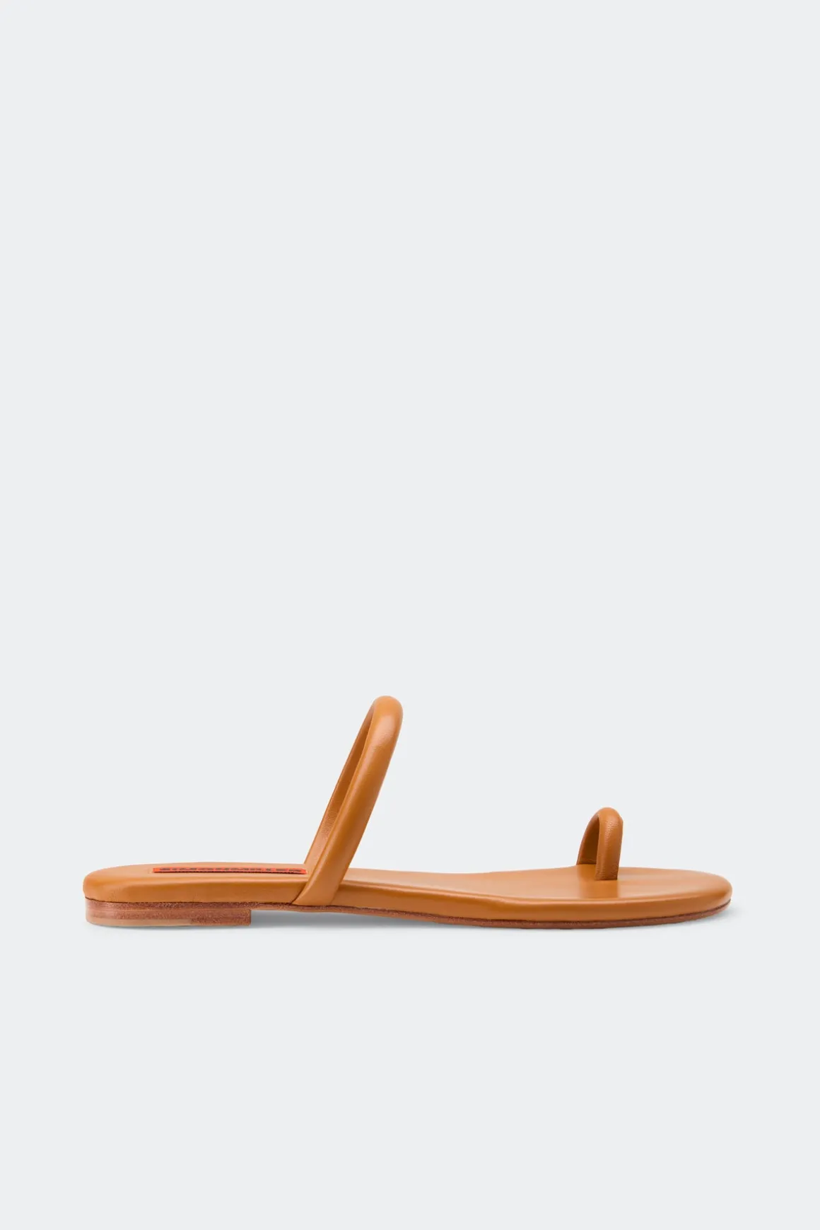 Minimal strappy flat sandal with a refined crossover strap and toe slit detail. Designed with a smooth leather sole for effortless, everyday wear.