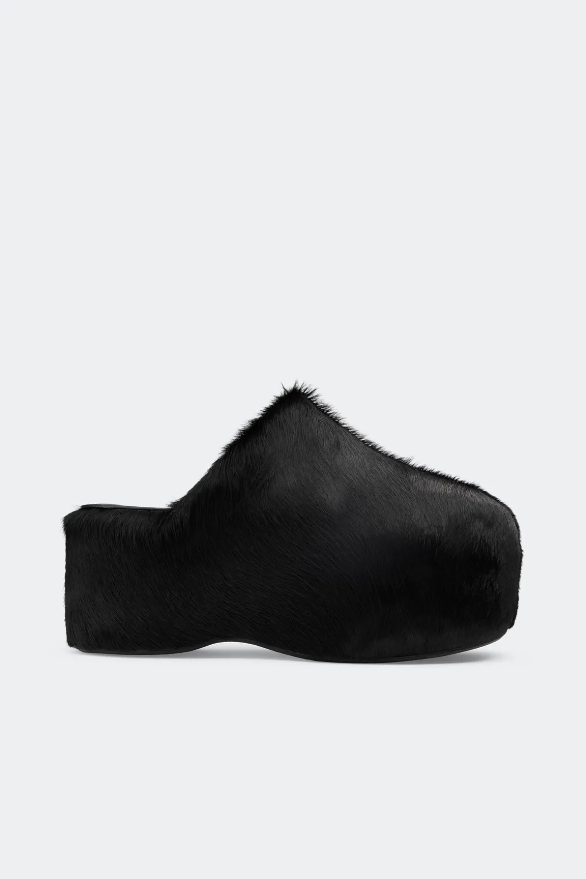 Our iconic Bubble Clog reimagined in cool black pony hair. A slip-on platform silhouette with rounded proportions and a cushioned leather footbed for all-day wear.